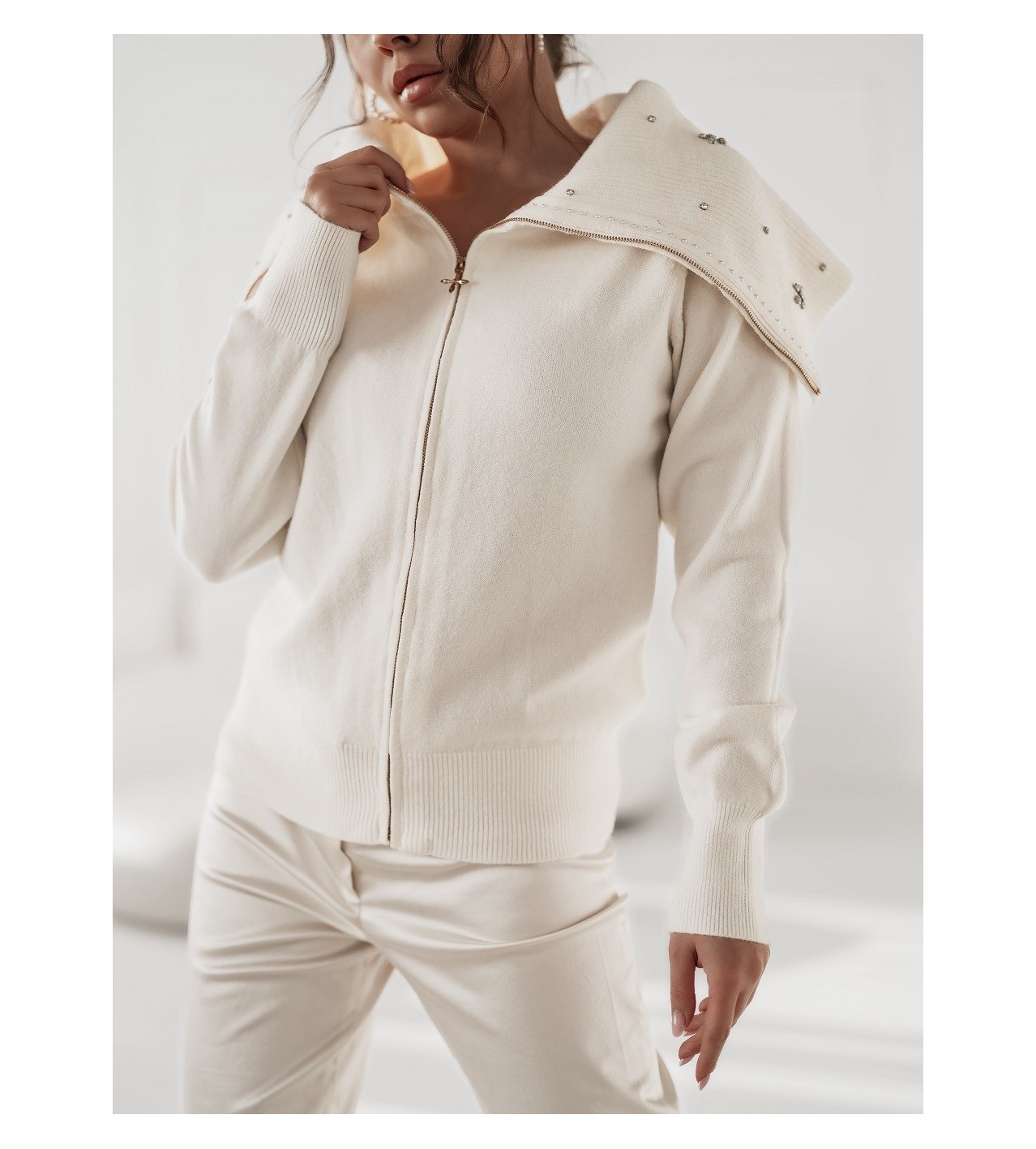 Weißer Pullover mit Kristallen