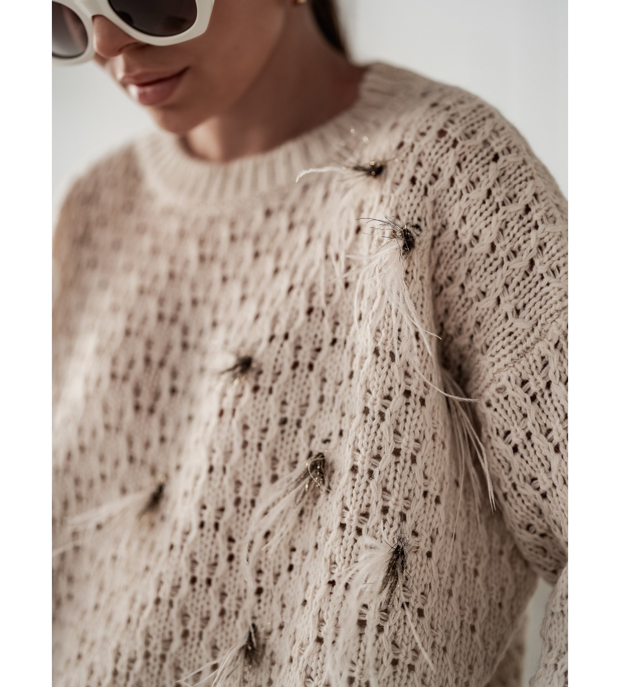 Wishlist Compare Quick view Creamy sweater with feathers €158.99 Add to cart Elegant cream-coloured jumper with striking feathers One size fits all