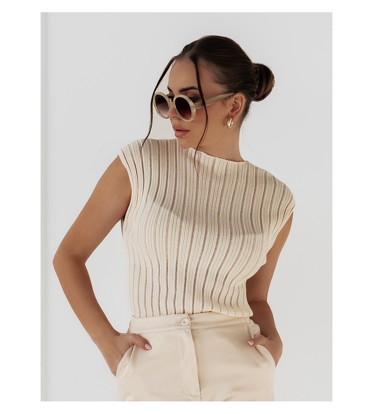Wishlist Compare Quick view Size S, M, L Elegant cream trousers €149.99 Add to cart Elegant, slightly elastic cream-coloured trousers Long, classic women's creased trousers with pockets