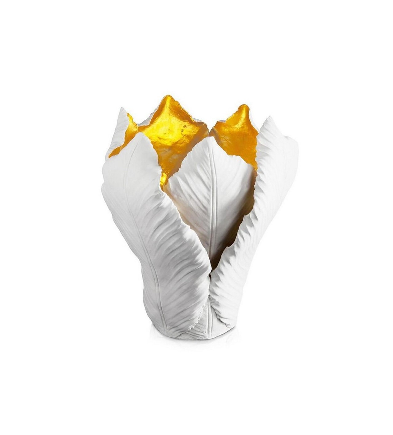 Bellissimo oggetto decorativo moderno a forma di tulipano. Esternamente è bianco, mentre internamente è dorato. La combinazione di questi due colori crea un perfetto connubio tra modernità ed eleganza.